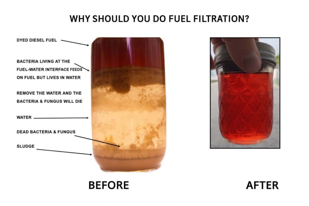 Another example of fuel filtration. This is the before and after results of fuel filtration.